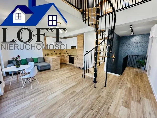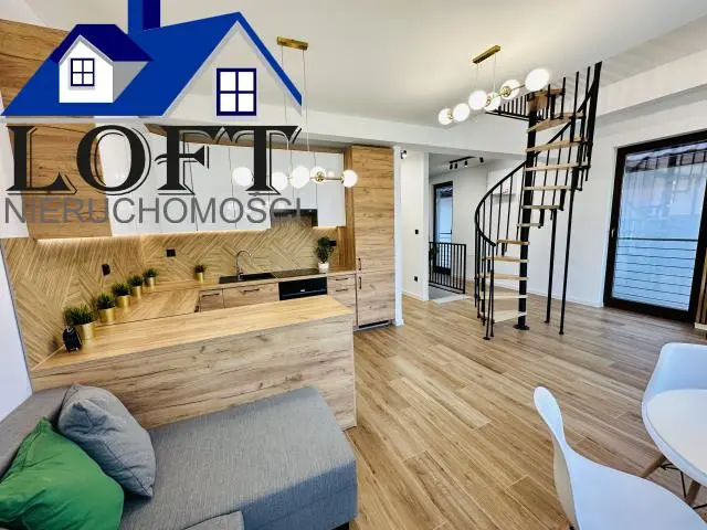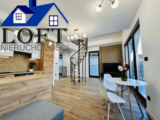 Na pierwszym poziomie znajduje się salon z otwartą kuchnią i z wyjściem na taras ,dwie sypialnie, łazienka z prysznicem oraz korytarz . (65,88m2)Na drugi poziom prowadzą solidne schody, gdzie znajdziemy dodatkowe jeden pokój , drugą łazienkę oraz otwarta przestrzeń do zagospodarowania np. bibliotekę.(48,50mb) Wnętrze jest jasne i słoneczne. Ogrzewanie i ciepła woda z pieca gazowego dwufunkcyjnego. W cenie pełna zabudowa kuchenna wyposażona w sprzęt AGD oraz wszystkie meble widoczne na zdjęciach. Na podłogach wysokiej jakości panele, w łazienkach, wiatrołapie i kuchni płytki.. Mieszkanie sprzedawane razem z miejscem postojowym na zamkniętym parkingu przy mieszkaniu.